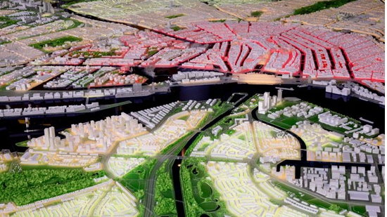 Cor van Zadelhoff laat vrijdag met een maquette van de jubilerende hoofdstad aan de Amsterdamse burgemeester Femke Halsema zien dat hij van zijn hart geen moordkuil maakt.